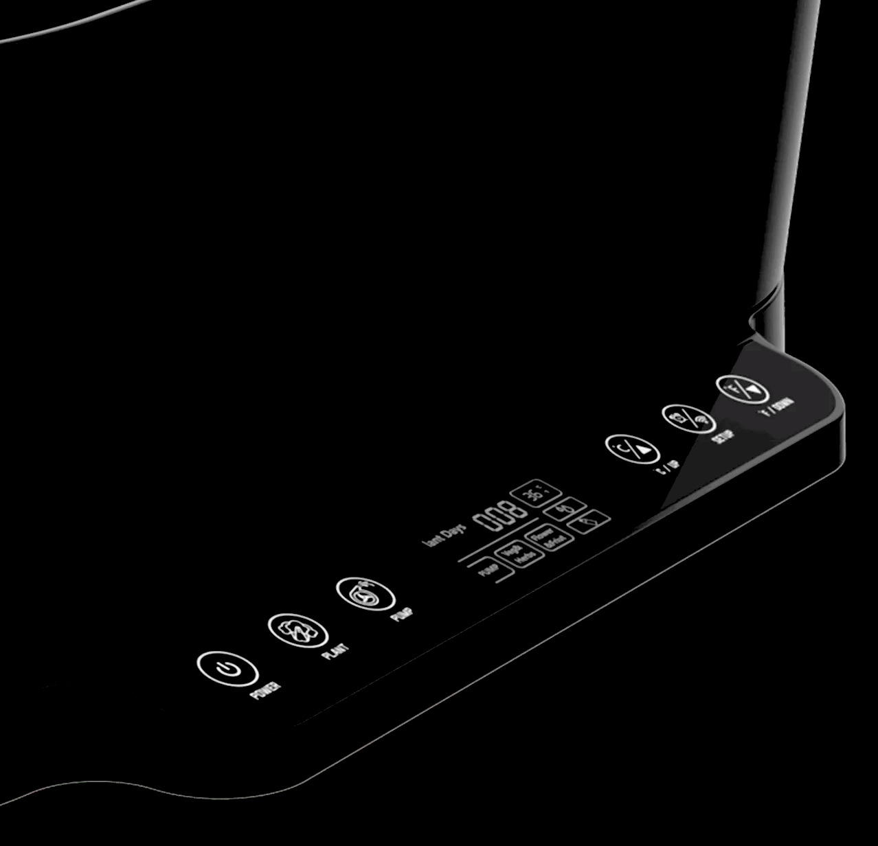 • An LCD control panel offers local control and helpful insights including water level, nutrient status, and temperature